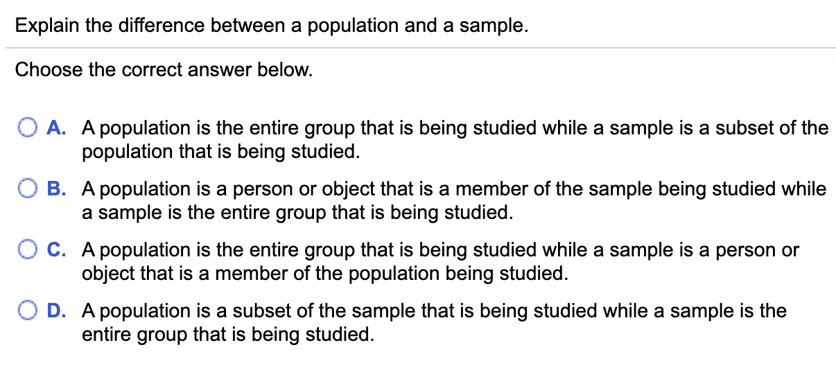 Explain the Difference Between a Population and a Sample Quizlet