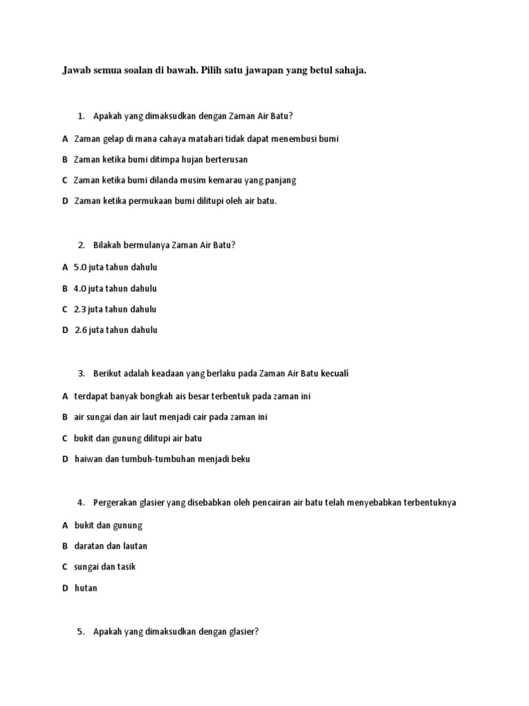 Latihan Sejarah Tahun 4 Kenali Zaman Air Batu Pdf